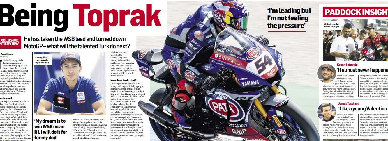 I obviously would say this…but if you get a chance to pick up an MCN newspaper or read the digital version, try to have a glance over the Toprak feature because it’s a refreshingly honest take on his situation. He is a very emotionally-driven character and he wants to win World Superbikes in honour of his legendary stunt-riding father, Tek Teker Arif, who only ever purchased one model of bike: the Yamaha R1…